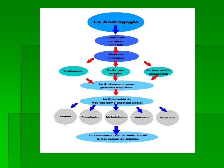 LA ANDRAGOGÍA ¿ES UNA CIENCIA? § ES UNA CIENCIA PORQUE SURGE DE LA REALIDAD SOCIAL, COMO HIPÓTESIS DE CAMBIO. § ES UNA CIENCIA POR SER DEMOCRÁTICA, CRÍTICA Y CREATIVA. § POR SU CARÁCTER PREDICTIVO, YA QUE CAPAZ DE DISEÑAR UN PROYECTO DE TRANSFORMACIÓN A PARTIR DE EXPERIENCIAS HISTÓRICO – SOCIALES, FAMILIARES, Y GRUPAL ASOCIATIVAS DE LOS ADULTOS § ES UNA CIENCIA PORQUE POSEE BASES