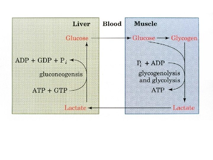 Regulators of gluconeogenic enzyme activity Enzyme Allosteric Inhibitors PFK ATP, citrate FBPase AMP, F 2 -6 P PK Alanine Pyr. Carb. Allosteric Activators Enzyme Phosphorylation AMP, F 2 -6 P F 1 -6 P Inactivates Acetyl. Co. A PEPCK PFK-2 FBPase-2 Protein Synthesis Glucogon Citrate F 6 P AMP, F 6 P, Pi Glycerol-3 -P Inactivates Activates