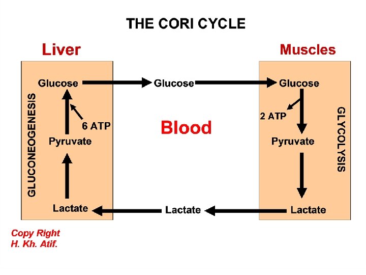 The Cori Cycle 3. Pyruvate is used as a substrate for gluconeogenesis 4. Glucose is returned to the muscles through the blood stream