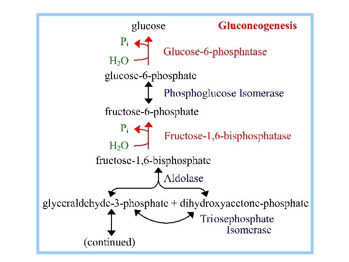Phosphofructokinase (In Glycolysis): fructose-6 -P + ATP fructose-1, 6 -bis. P + ADP Fructose-1, 6 -bisphosphatase (In Gluconeogenesis): fructose-1, 6 -bis. P + H 2 O fructose-6 -P + Pi