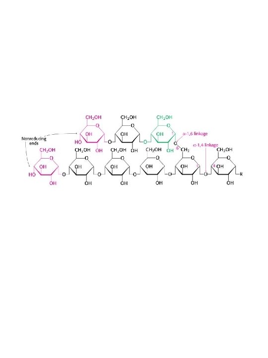 Cellulose b 1 -4 glucose Plants Animals Starch • amylose • amylopectin Glycogen a 1 -4 + a 1 -6 glucose
