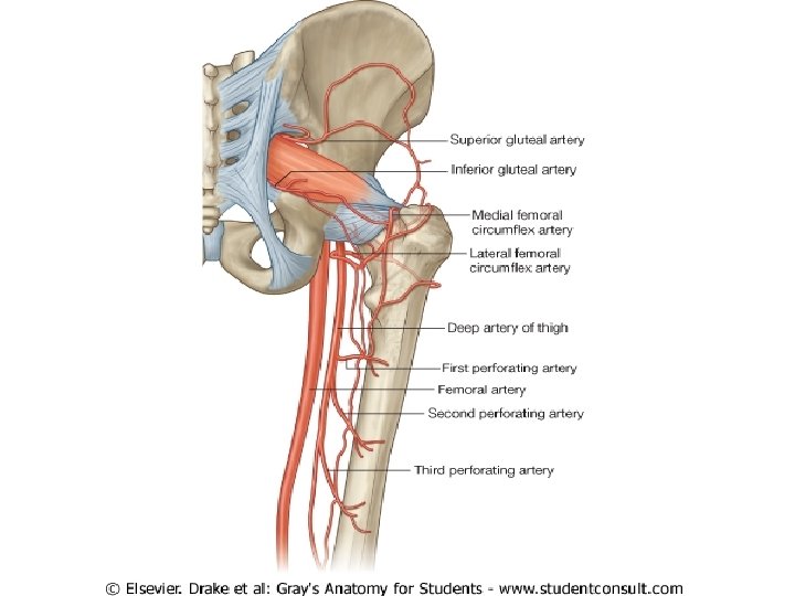 TROCHANTERIC ANASTOMOSIS • DESCENDING BRANCH OF SUPERIOR GLUTEAL ARTERY. • A BRANCH OF INFERIOR GLUTEAL ARTERY. • ASCENDING BRANCH OF LATERAL CIRCUMFLEX FEMORAL ARTERY. • ASCENDING BRANCH OF MEDIAL CIRCUMFLEX FEMORAL ARTERY.