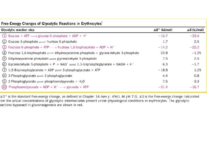 Glycolysis - Degradation of glucose in a series of enzyme catalyzed reactions to yield 2 pyruvate molecules and free energy is released in the form of ATP and NADH. - Glycolysis is at the central pathway of carbohydrate metabolism because virtually all sugars can be converted into glucose. - Most of energy is conserved in the pyruvate. - Glycolysis is the source of metabolic energy in mammalian tissue and cell types like erythrocytes, renal medulla, brain, and sperms. Glucose + 2 NAD+ + 2 ADP +2 Pi 2 NADH + 2 pyruvate + 2 ATP + 2 H 2 O + 4 H+