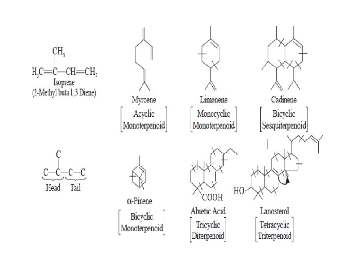 Terpenoids A plethora of naturally occurring plant products have been found to be related wherein they are comprised of one or more units of isoprene (C 5 H 8)-a hydrocarbon: In general, terpenoids, may be defined as natural products whose structures are considered to be divided into several isoprene units; therefore, these compounds are termed as isoprenoids. Terpenoids are broadly classified on the basis of the number of isoprene units into:
