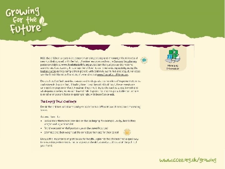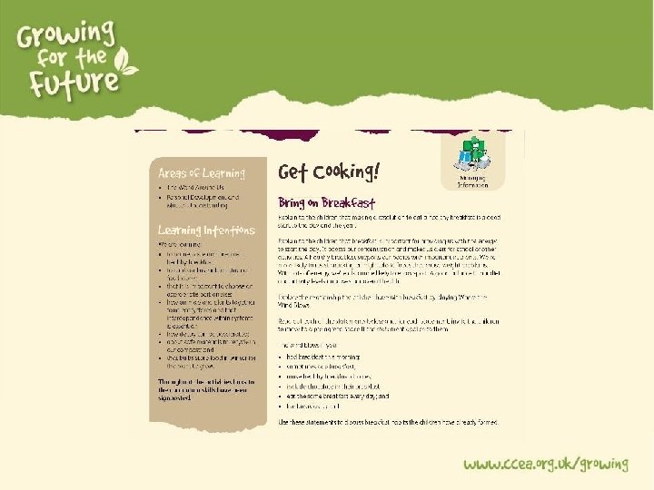 • The seed was planted • 2016 Year of Food and Drink • Partnership with Tourism NI • Featuring Jilly Dougan- The Edible Gardener • To nurture: • Understanding where food comes from • Knowledge of food and healthy eating • Development of practical food skills and cooking own produce • Connections with children, parents and local community to the concept of food growing and local produce • Opportunities of future careers in the hospitality and tourism industry