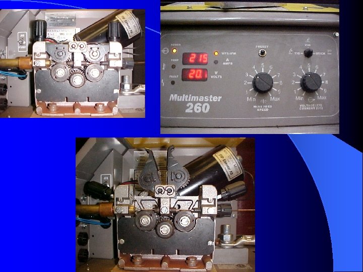 Welding Control & Wire Feed Motor v Welding control & Wire feed motor are combined into one unit v Main function is to pull the wire from the spool and feed it to the arc v Controls wire feed speed and regulates the starting and stopping of wire feed v Wire feed speed controls Amperage