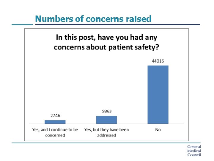 Why does the GMC exist? ‘… to protect, promote and maintain the health and safety of the public. ’ (Medical Act 1983) n Our purpose is to protect, promote and maintain the health and safety of the public by ensuring proper standards in the practice of medicine. n We are the regulator of doctors rather than a professional body for doctors.