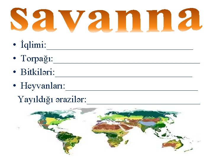 Qruplar Cəngənlik Meyarlar Şərhetmə Kontur xəritədə qeydetmə Təqdimat Əməkdaşlıq Yekun Savanna Tundra Səhra