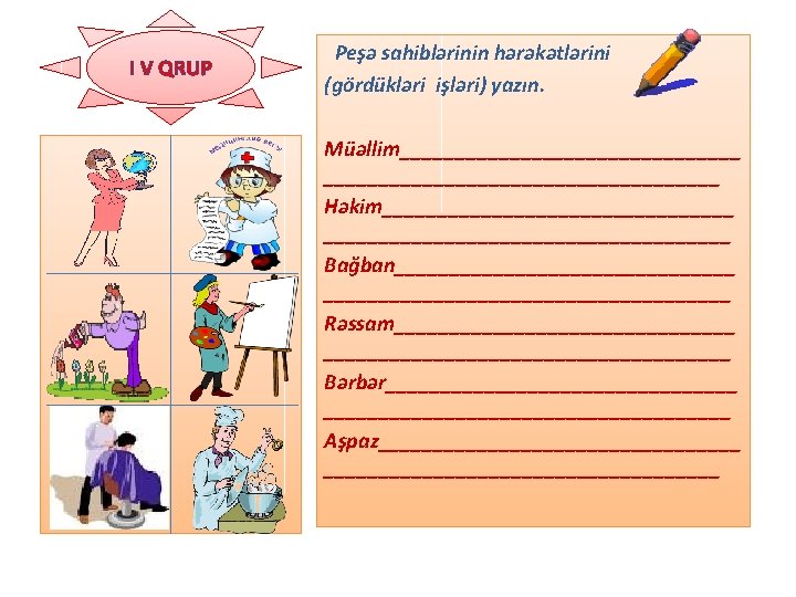 I I QRUP Gün rejiminə aid inşa yazın. Hərəkət bildirən sözləri seçib altından xətt çəkin. ________________________ ________________________ Kömək edin!. . _____________