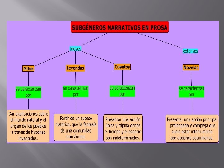 Subgéneros narrativos le considera un subgénero a una expresión literaria que se caracteriza porque se relatan historias imaginarias o ficticias (sucesos o acontecimientos) que constituyen una historia ajena a los sentimientos del autor. Aunque sea imaginaria, la historia literaria toma sus modelos del mundo real. Pertenecen al género narrativo obras tales como el cuento, la novela, la fábula, la leyenda y otras