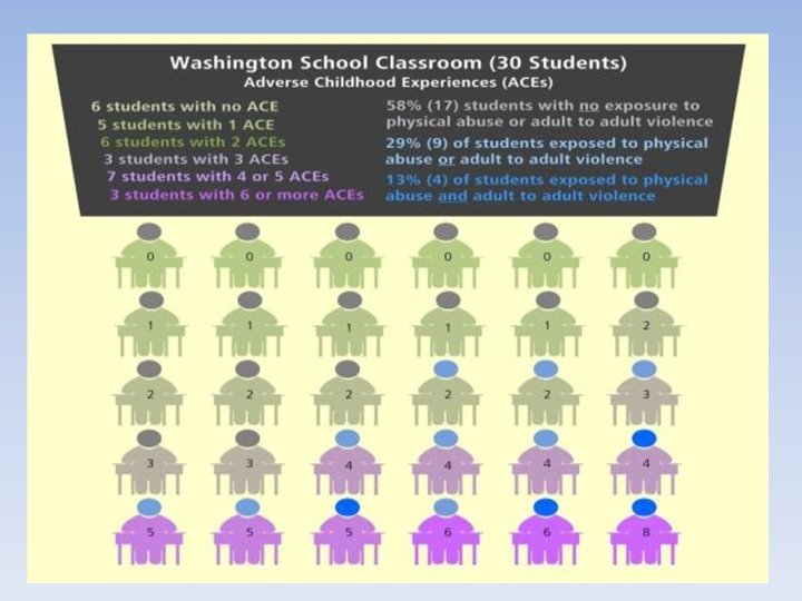 Adverse Childhood Experiences (ACEs) Personal 1. Emotional abuse 2. Physical abuse 3. Sexual abuse 4. Emotional neglect 5. Physical neglect Family 1. Witnessing domestic violence 2. Alcohol or substance abuse in the home 3. Mentally ill or suicidal household members 4. Parental marital discord (as evidenced by divorce) 5. Incarcerated household member