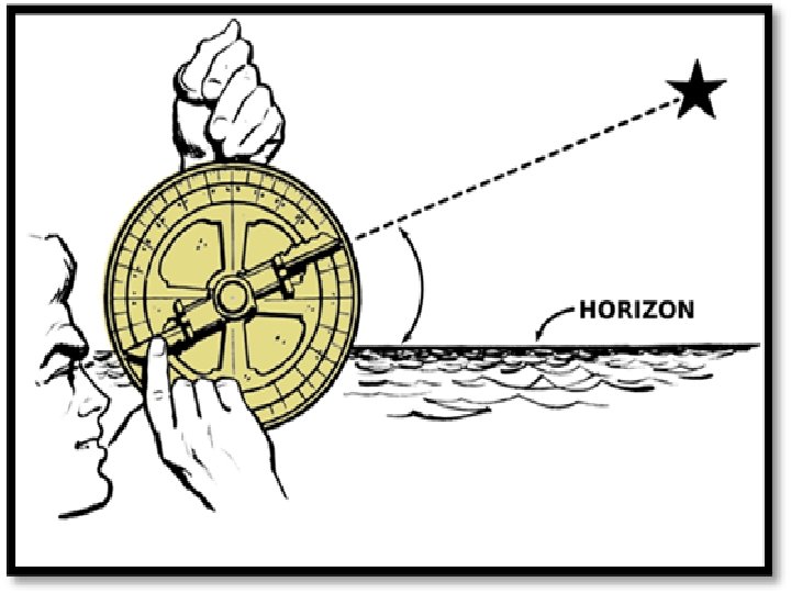Navigational Techniques To better determine their location at sea, sailors used the astrolabe. The astrolabe was a brass circle with carefully adjusted rings marked off in degrees. Using the rings to sight the stars, a sea captain could calculate latitude, or how far north or south of the equator the ship was.