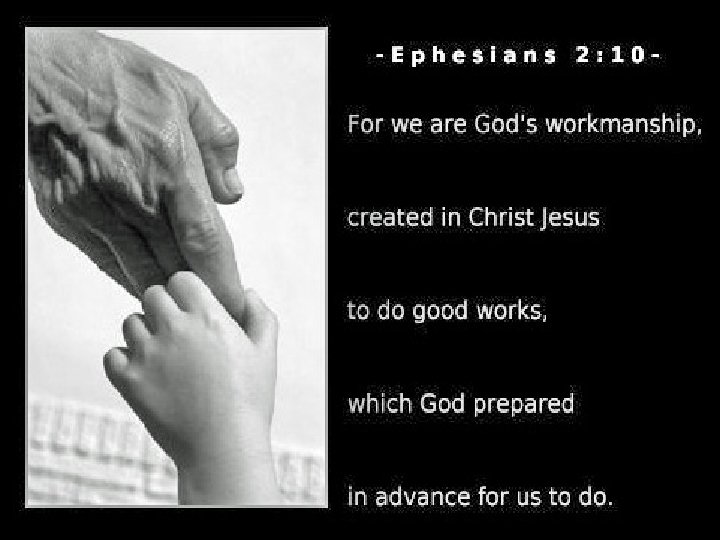 For by grace you have been saved through faith, and that not of yourselves; it is the gift of God, not of works, lest anyone should boast. For we are His workmanship created in Christ Jesus for good works, which God prepared beforehand that we should walk in them. Ephesians 2: 8 -10