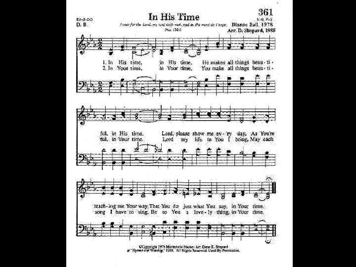 • IN HIS TIME - HE MAKES ALL THINGS BEAUTIFUL IN HIS TIME – Time means nothing to God 2 Pet 3: 8; Eccl 3: 11; Gen 1: 14; 2 Ki 20: 9; Isa 38: 8 – "In His time" - Time = season Psa 1: 3 - that is; when everything was right for an event to happen Gal 4: 4; Eph 1: 10