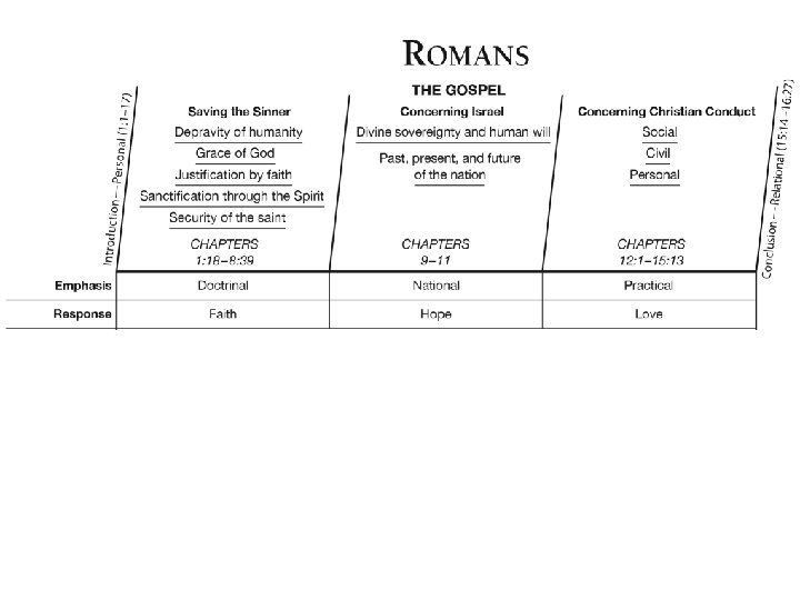 * * Romans 9 – Israel’s past election Romans 10 – Israel’s present rejection Romans 11 - Israel’s future restoration