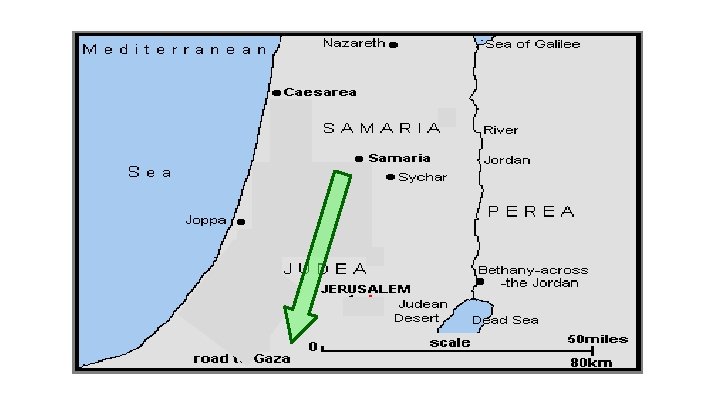 1. God led Philip to Gaza (v. 26 -27) Now an angel of the Lord said to Philip, "Rise & go toward the south to the road that goes down from Jerusalem to Gaza. " This is a desert place. (8: 26) 5 Philip went down to the city of Samaria & proclaimed to them the Christ. 6 And the crowds with one accord paid attention to what was being said by Philip when they heard him & saw the signs that he did… 8 So there was much joy in that city… 12 But when they believed Philip as he preached good news about the kingdom of God & the name of Jesus Christ, they were baptized, both men & women. (8: 5 -12)