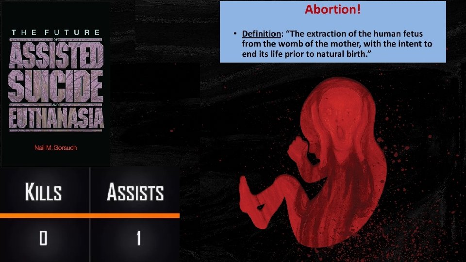 Since 1973, more than 60 million babies have been murdered through abortion. And countless lives have been cut short by euthanasia. The key difference between euthanasia and assisted suicide is that in cases of assisted suicide, the individual receives assistance, but ultimately voluntarily causes their own death. In euthanasia the individual does not directly end their life, but another person acts to cause the individual's death.