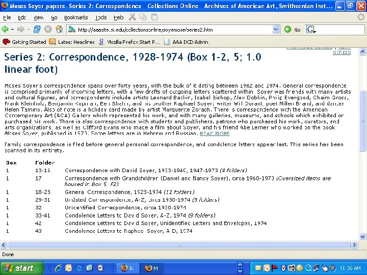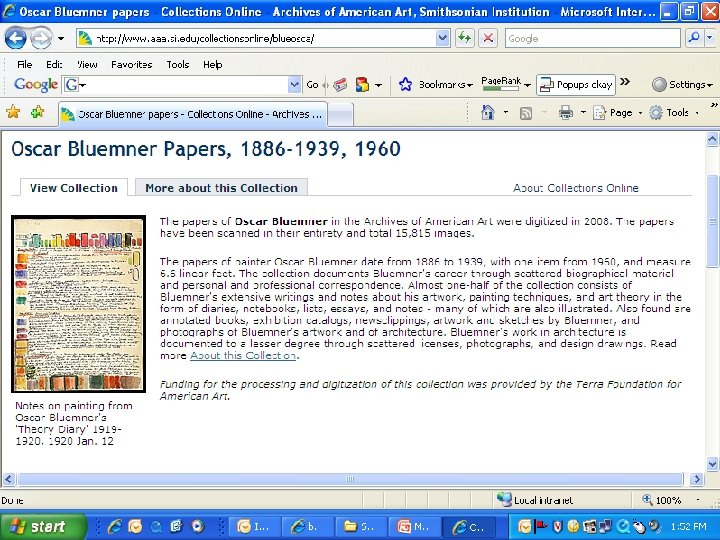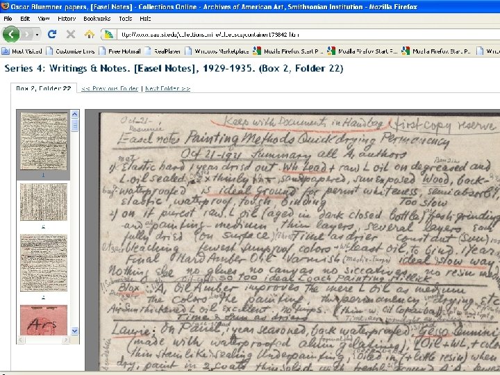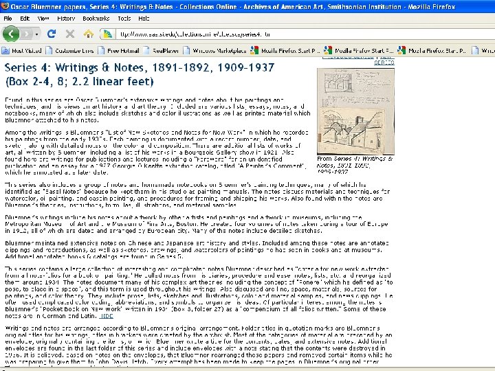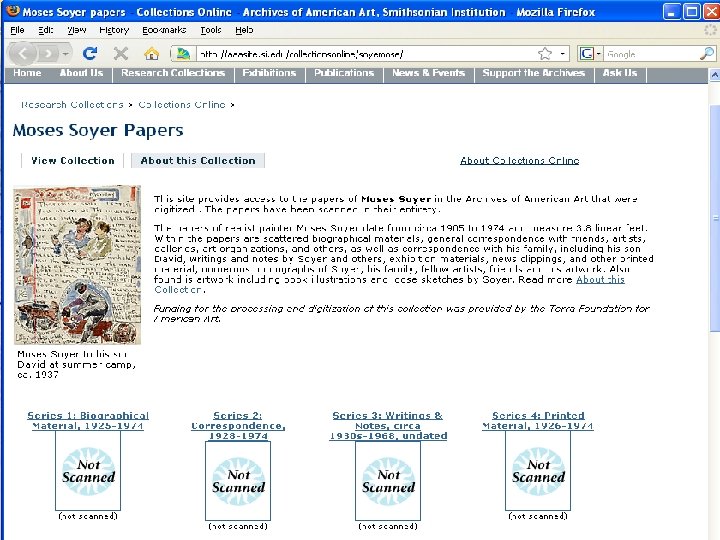 Collections Online http: //www. aaa. si. edu/collectionsonline • Entire collections vs. selected items • Built upon fundamental archival approaches • 76 collections; 512 linear ft. ; 673, 000 digital files