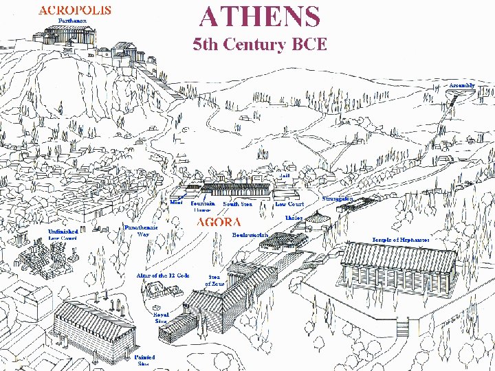 “Golden” Athens n Perikles ruled Athens forty-five years (469 -429 BCE); he promoted the arts and literature; this was a chief reason Athens holds the reputation of being the educational and cultural centre of the ancient Greek world. He started an ambitious project that built most of the surviving structures on the Acropolis (including the Parthenon). This project beautified the city, exhibited its glory, and gave work to the people. Pericles was the most passionate proponet of Athenian Democracy and , so historians called him “the first citizen”.