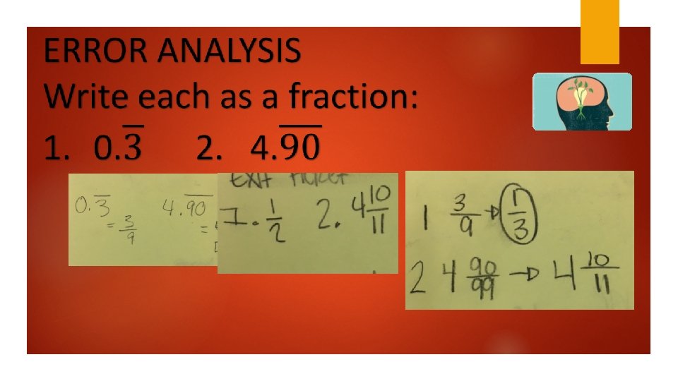 AGENDA ~Exit Ticket & Analysis ~IXL Tic-Tac-Toe ~Solo Practice for grade ~Logon ALEKS-take knowledge check, view hmwk ~Video 0. 9999=1? Objective: 8. NS. A. 1 I can convert a repeating decimal into a fraction in simplest form.
