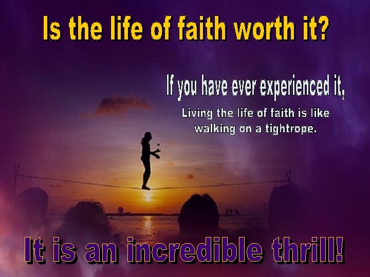 After his crossing, Blondin challenged a nearby reporter: “Do you believe I can do anything on a tightrope? ” “Oh yes, Mr. Blondin, ” said the reporter, “after what I've seen today, I believe it. You can do anything. ” “Do you believe, then, ” said Blondin, “that instead of a sack of cement, I could put a man in this wheelbarrow—a man who has never been on a tightrope before--and wheel him, without a net, safely over to the other side? ” “Oh yes sir, Mr. Blondin, ” said the reporter, “I believe it. ” “Good, ” said Blondin. “Get in. ”