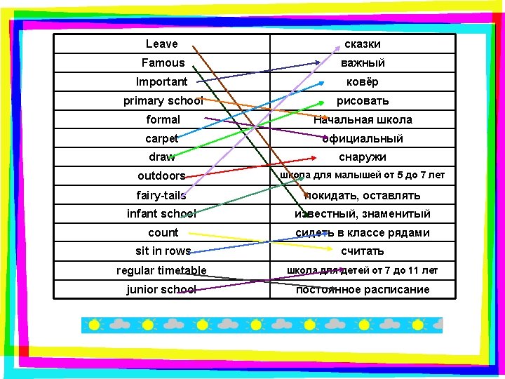 Agree or disagree. 1. English children leave school at the age of five. 2. English school never begins on Mondays. 3. Lessons in primary school usually begin at nine. 4. Lessons usually over at three. 5. English children sometimes have lessons on Saturday. 6. At the age of five children go to infant school. 7. Schools in England have numbers. 8. Infant lessons are formal. 9. Junior schools are real schools. 10. When children are 10 they go to junior school.