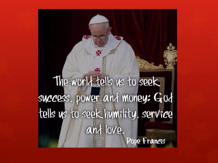 Pope Francis… Is the first pope from the Americas Is the first Pope from the Jesuit order Is the first Pope to take the name Francis Has a strong devotion to Mary Loves to visit the poor Loves soccer Speaks: Spanish, Italian, English, French, and German