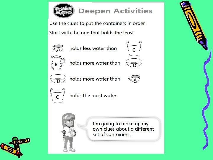 Now I would like you to have a go at completing work in your CGP Maths Reasoning workbook. If you would like to try Gruffalo work, complete page 24. If you would like to try Horrid Henry work, complete pages 24 and 25 If you would like to try James and the Giant Peach work, complete pages 24 and 25 and my ‘Deepen Activity’ question on the next slide.