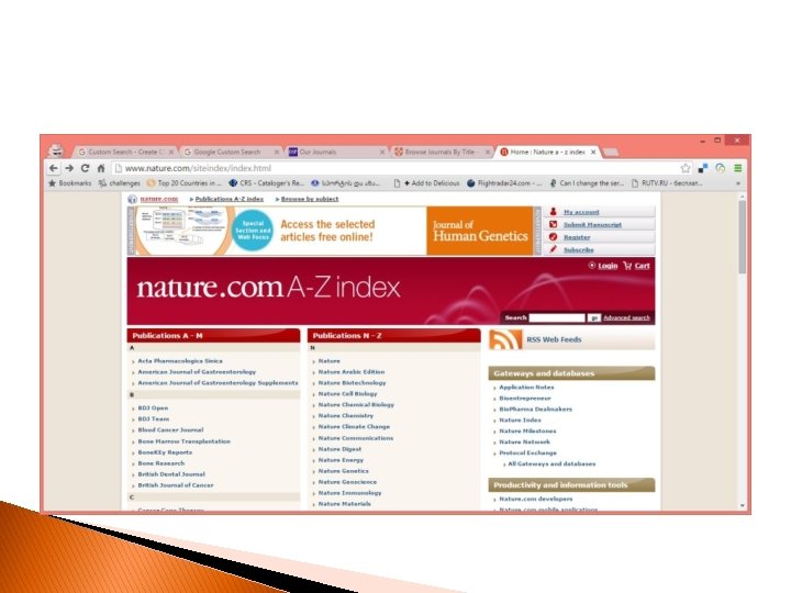 Open. DOAR � Open. DOAR is a Directory of Open Repositories including thousands of OA repositories of Universities, scholarly societies, etc. worldwide. � More than hundred countries � Several languages (English, French, Russian, . . ) � It includes searching for repositories (where you can find OA repositories worldwide by your interest) � As well as CSE for searching through all these databases