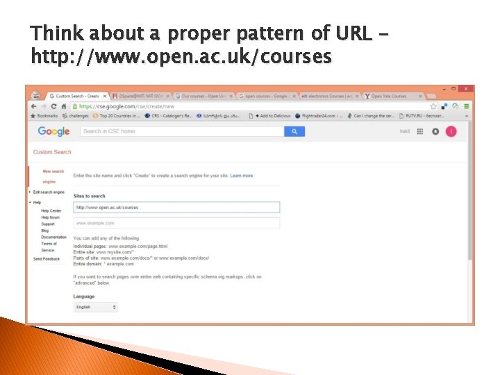 Think about a proper pattern of URL http: //www. open. ac. uk/courses