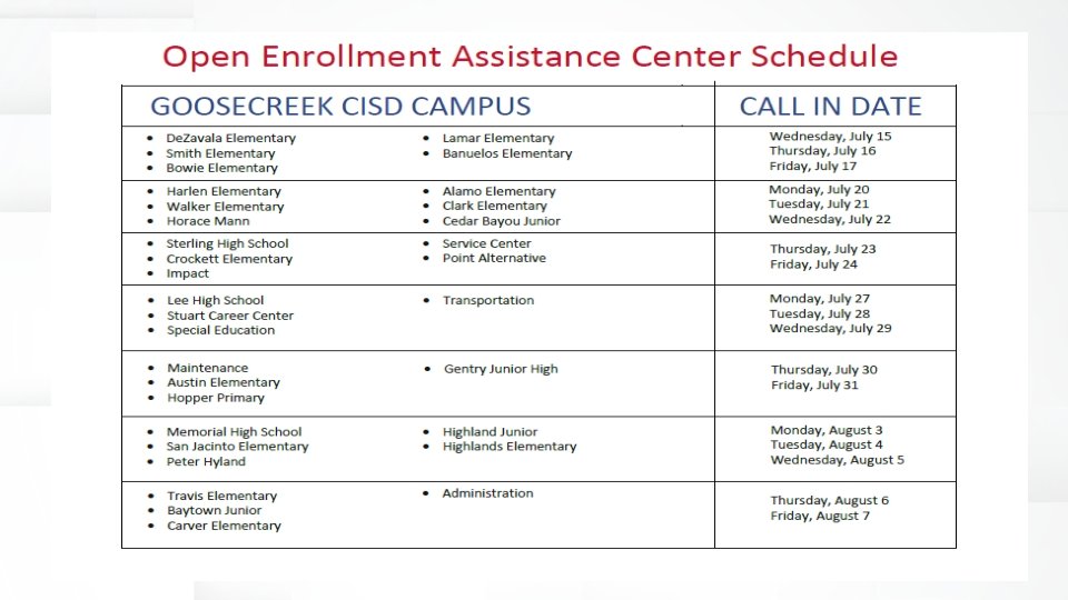 How to Enroll Online Enrollment: Enroll Online To begin online enrollment, visit https: //ffga. benselect. com/Enroll/login. aspx LOGIN • Login: Your Employee ID or Social Security Number (no dashes) • PIN (first login only): The last four digits of your Social Security Number and the last two digits of the year you were born (six digits total) • New PIN: The first time you login, you will be required to change to a new PIN. Please note your new PIN because you will use the new PIN from that point forward. Enrollment Assistance Center (EAC) Instructions Information gather prior to enrolling or calling the EAC ü Social Security Numbers and dates of birth for all Spouses and eligible Dependents ü Any Status/Life Event or address changes ü Questions about available benefits ü Look over the new medical plan changes and options. ü If choosing the TRS Primary or Primary+ Plans you will need to search for your Doctor with this link www. bcbstx. com/trsactivecare ü Have the 10 digit PCP number ready to input into the system. This year due to COVID 19, employees will have the option to speak with your First Financial account manager by phone through our Enrollment Assistance Center or enroll online. Call 855 -765 -4473 and select Option 3 to be connected to your local First Financial branch office. Hours of operation are 8 a. m. to 5 p. m. (local time), Monday – Friday. There is an option to leave a voice message for a representative to call you back. Phone calls will be returned as soon as possible or the next business day if it is after hours. There is a schedule for when you are able to call in that is available on next page. It is based off what campus/location you work at, and the days that location is able to call into the Assistance Center.