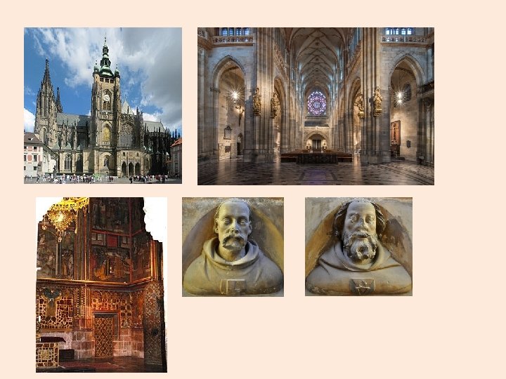 Katedrála sv. Víta, sv. Václava a Vojtěcha • Dříve románská bazilika sv. Víta • 1344 - zahájena stavba trojlodní gotické katedrály • 1873 -1929 dokončení stavby • Stavbu zahájil Matyáš z Arrasu, pokračoval v ní Petr Parléř a další.