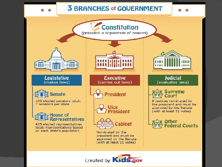 Create your own “Foldable” � Use the diagram and the information on page 49 in your text. � Include the following: �Each branch listed on the front flap �The basic duties of each branch on the inside back �Title of foldable along side