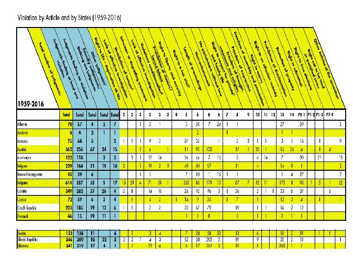 Broj presuda za kršenje slobode izražavanja po državama