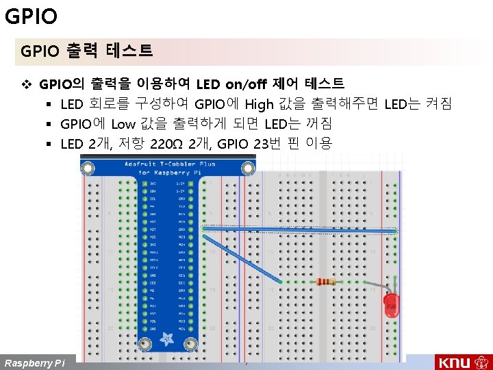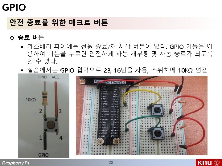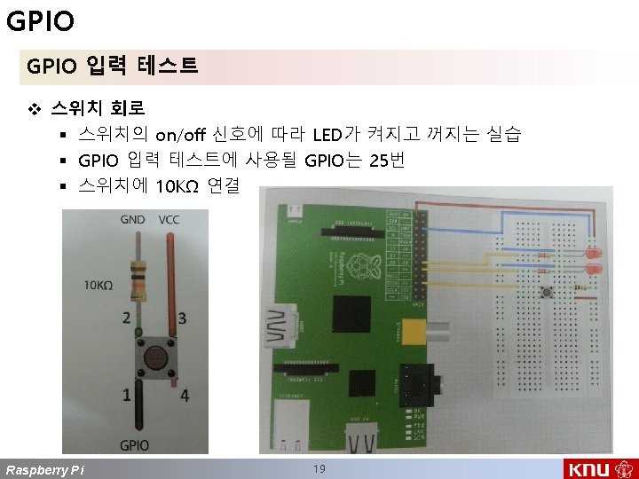 GPIO 입력 테스트 LED : 220Ω Button : 10 KΩ v 스위치 회로 - 회로도 Raspberry Pi 20