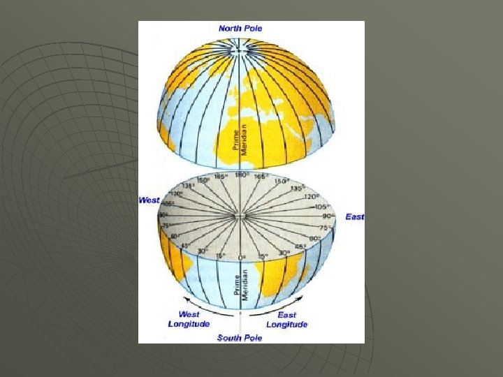 Longitude Also known as meridians, run vertical u The Prime Meridian in Greenwich, England is 0° u Lines range from 0° to 180° u International Date Line is 180° u