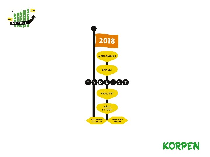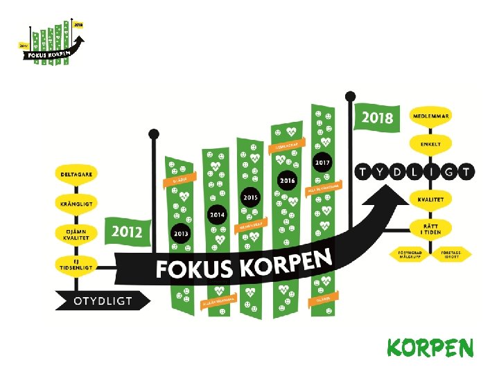 Målbilden 2018 ● Korpens erbjudande är tydligt och känt ● Fler arbetsplatser ● Deltagare i Korpens verksamhet är medlemmar ● Fler ungdomar