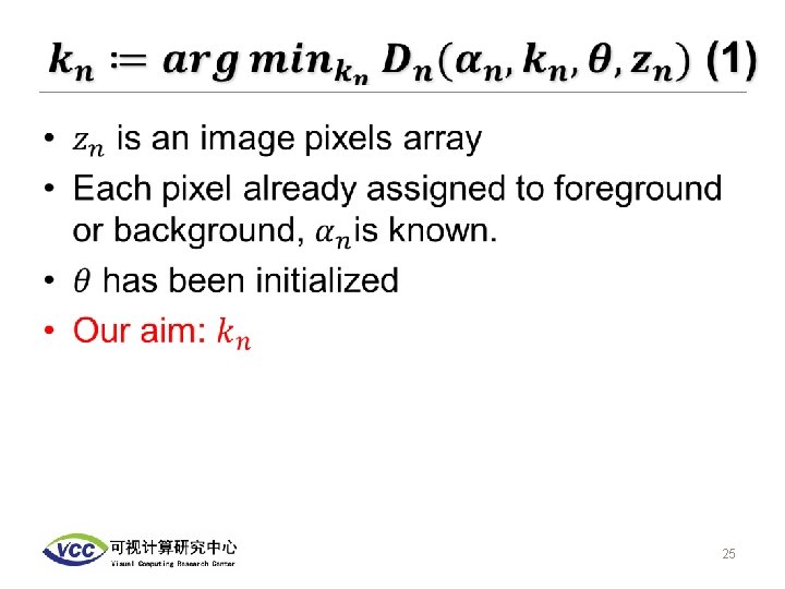 • The V is unchanged from the previous term except the pixel distance calculation weight means covariance opacity GMM components 22