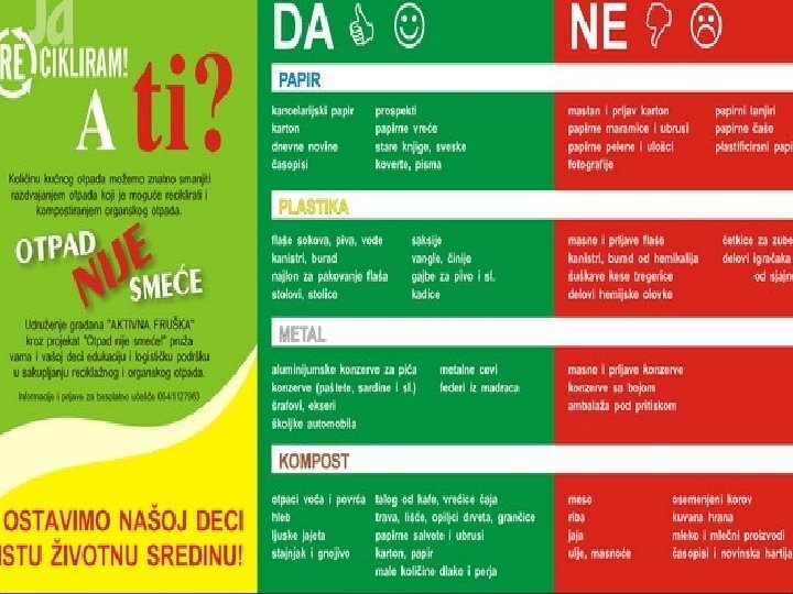 Upravni postupak Postoji i veliki broj individualnih sakupljača, koji rade kao fizička lica i nigde nisu evidentirani. Primeri reciklaže: • Proizvodnja jastučića, taburića, papuča, . . . od tekstilnog otpada-ostataka od šivenja presvlaka za automobile; • Proizvodnja gajbica i automobilskih tablica i prateće automobilske opreme od čvrste otpadne plastike;