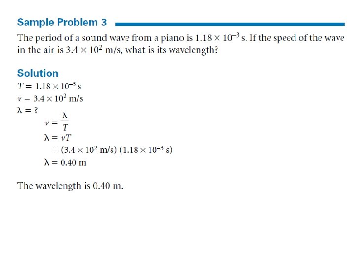 Example • A laser emits a coherent light beam with a wavelength of 650 nm. What is the frequency of the wave?