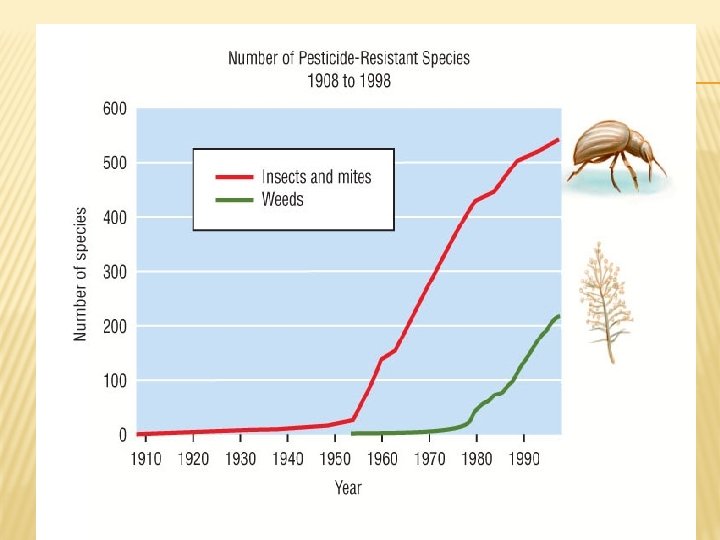PESTICIDE RESISTANCE � Pest species may become resistant to a pesticide if it is used for a long time. � When a pest species develops resistance, farmers need to apply a greater concentration of pesticide, or switch to a different pesticide. � Pesticide resistance is a serious concern worldwide.