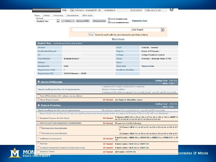 Office of Analytics & Systems Management Scenario #7 A student accesses his Degree. Works record and wonders why his current courses do not appear. A. The student’s grade point average is below 3. 0 and their Degree. Works record is frozen until they contact their advisor. B. The student has not yet submitted his program of study and what appears is the generic requirements for the degree program. C. The student cannot use Degree. Works until they have selected an advisor/graduate committee chair.