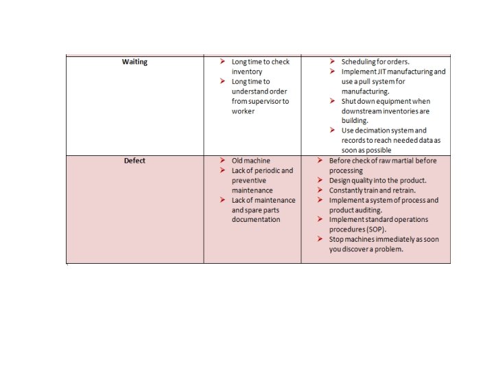 ØRecommendations Ø The workers need for improvement course regularly. Ø Document system should be improved and regularly edited. Ø The factory need to forecast system , quality management system , inventory management system and planning. Ø The workers must adhere to the new system instructions. Ø Lean manufacturing should be as culture in side factory.