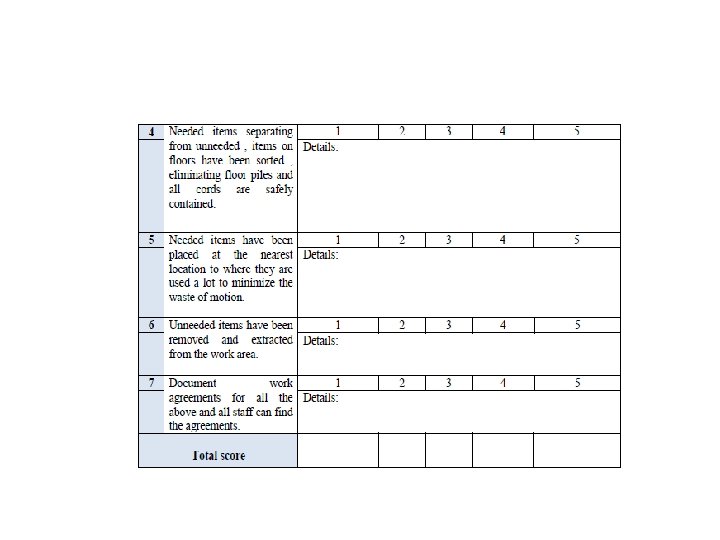 Ø 5 S Audit Form Sort Audit Form