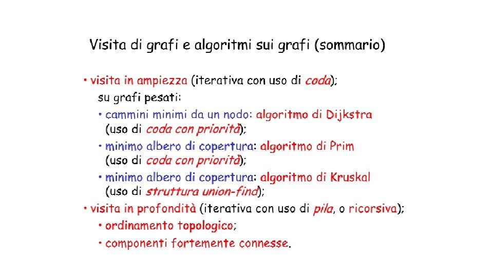 Qual è meglio usare ? Le liste di adiacenze sono preferibili quando il grafo è sparso, ossia quando il numero degli archi |E| è relativamente piccolo, rispetto al numero dei nodi |V|. Le matrici sono invece preferibili se il grafo è denso, ossia quando il numero degli archi |E| ≅ |V|2. Inoltre, la matrice di adiacenze mi permette subito di capire se due nodi del grafo sono collegati tra loro. Viceversa, in una lista di adiacenze la ricerca è più lunga