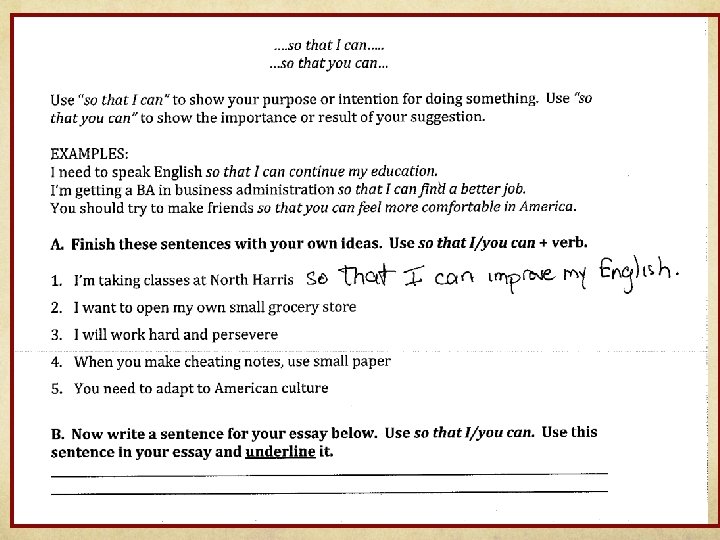 What the research says… Construction grammar (Hinkel) Use language chunks/prefabs Allow students to create new “units” vocab and grammar on a continuum