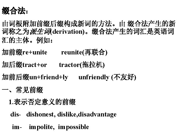 List examples of word formation as many as possible in each item. misinter-ion -ment overdis-through. -ure extraex-ness bio-