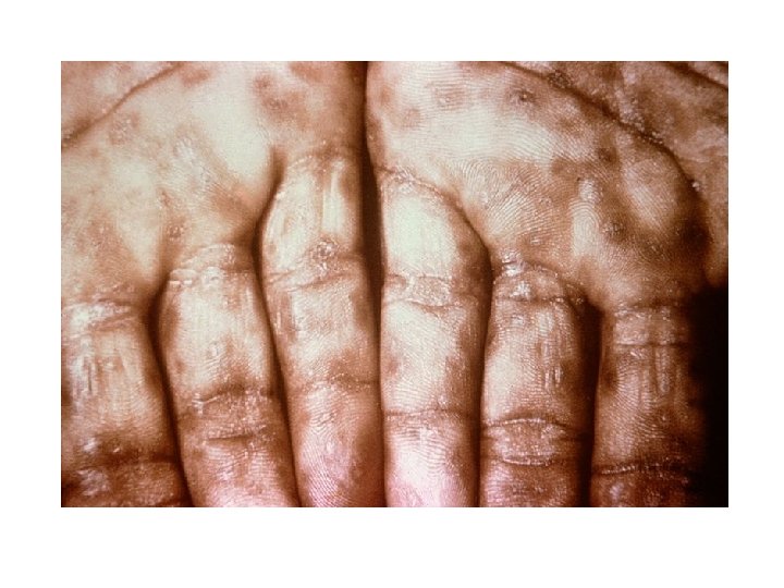 Pathogenesis & Clinical finding • No important toxins or enzymes. • Primary stage Chancre in 2 – 10 weeks (average 21 days). The ulcer heals spontaneously, but spirochetes spread widely in tissues. • Secondary stage: Lesions as maculopapular rash or moist papules on skin and mucous membranes. Or organ involvement (meningitis, nephritis, hepatitis…. ).