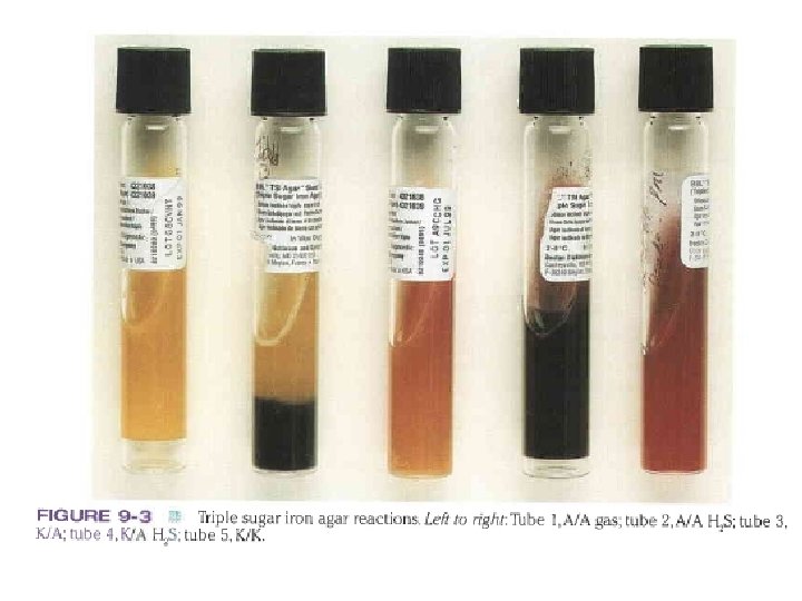 Different observations for TSI Reactions Slant Button Gas H 2 S Representative genera Acid + - Escherichia, Enterobacter, Klebsiella Alkaline Acid - - Shigella, Serratia Alkalin Acid + + Salmonella, Proteus Alkalin - - Pseudomonas