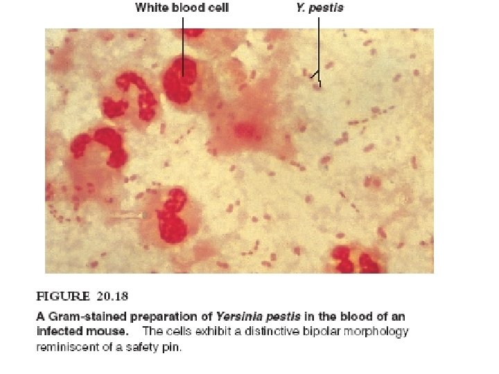 Genus: Yersinia Species: Yersinia pestis and Yersinia enterocolitica • Small gram negative bacillus, bipolar staining (like a safety pin), capsule in freshly isolated organism but lost with passage. Non motile. • Disease Plague or black death